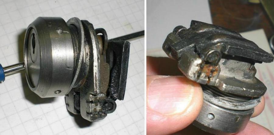 ho tolto la serratura bloccasterzo (non ho la chiave), dal confronto con uno nuovo ha la “paletta” inclinata (vedi foto 2)