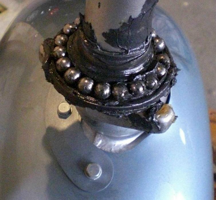 2° dubbio : la vba/1958 non ha le sferette (sterzo) già ingabbiate come per le successive vbb1, ma semplicemente libere, annegate nel grasso (vedi foto 1) Domanda : per comodità si può mettere il gruppo ralla sup e inf. della vbb1 o non è compatibile ???