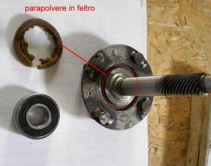 Il cuscinetto con doppia schermatura va bene, ma ti consiglio di togliere quella rivolta verso la forcella, perchè comunque il mozzo va riempito di grasso, per lubrificare anche il rinvio del contachilometri. Lascia pure la schermatura lato ruota, invece, così l'anello di feltro risulterà pressochè superfluo... E visto che la soluzione, benchè sufficiente, non è ottimale quanto il paraolio adottato in seguito... tanto di guadagnato.