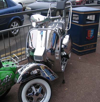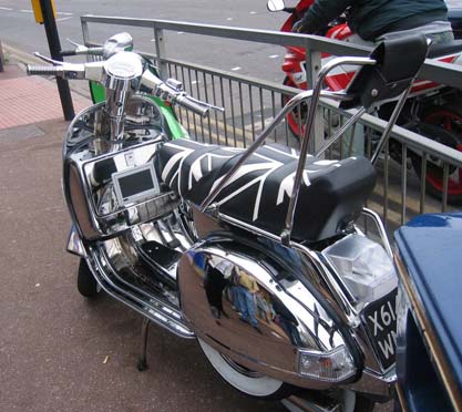 secondo me cosi è esagerata!!!! cioè il cromato come tutti i colori non deve stufare! il mio sogno sarebbe farla nera con tutti i particolari cromati ed una fascia del tricolore italiano che parte dal bordoscudo anteriore ,da sotto il naubrio, ed arrivi fin dietro alla vespa... non so se mi sono spiegato! nei miei sogni è kiarrissimo! |