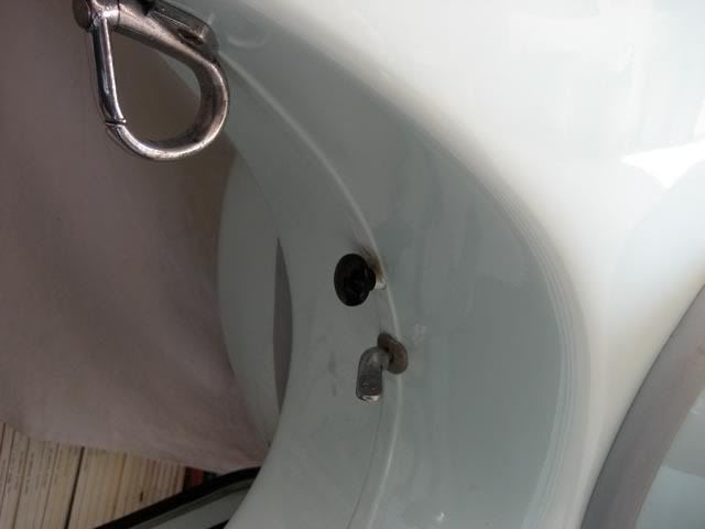Ecco il particolare del rubinetto della benzina che si è rotto. Praticamente si è rotto uno dei due fori nei quali va ad infilarsi la coppiglia che ferma l'asticella del rubinetto della benzina. Meno male che ho sostituito l'asta, altrimenti non penso che mi sarei accorto della rottura e non oso immaginare le conseguenze di una possibile completa rottura lontano da casa!!!