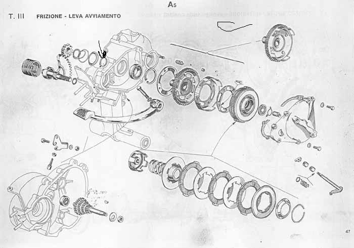 Scusami si doveva togliere l'ingranagio della peduvella ma solo quello piccolo ti invio uno spaccato del motore