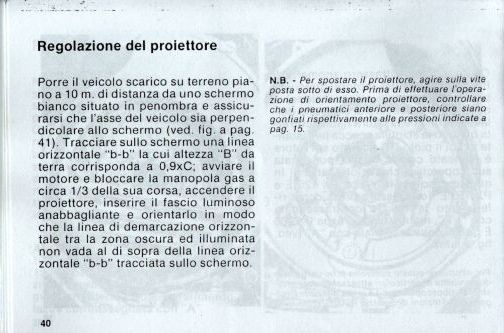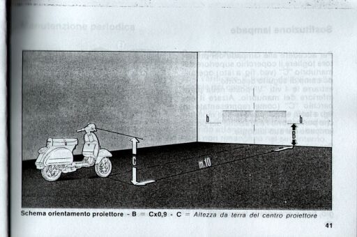 so che per le auto si mette il veicolo a 10m da una parete, e il fascio nella parete non deve superare e 9/10 dell' altezza del proiettore da terra...