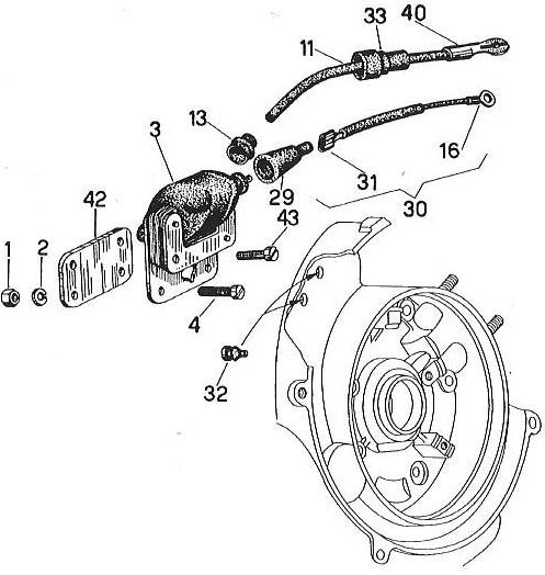Da quì si ci collega all'impianto elettrico della Vespa rispettando i colori. E fino quì tutto a posto ma.... c'è un quarto filo (filo della candela a parte) contrassegnato in figura con il nr. 30 che va da una aggeggio che al momento non ricordo come si chiama ma che potete vedere in questa figura a dove? Alla scatoletta collegato con il filo rosso?