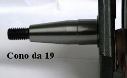 Per sapere se un albero è cono 19 o cono 20 bisogna misurare la base del cono (la parte più larga prima della parte cilindrica), quella su cui si incastra il volano.