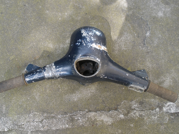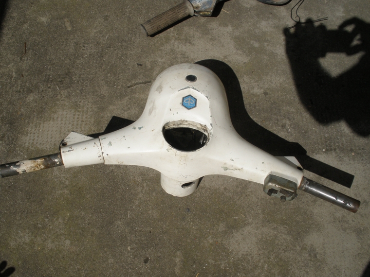 Manubrio 50N per assurdo il più ricercato dei quattro, in virtù del fatto che le 50N-L-R spesso furono trasformate in 50 Special a fanale quadrato, idem come prezzo, sempre tubi comandi chioccie di tiro e staffa presenti sui 30-40 euros, ne esiste una versione di poco differente (simile ma non uguale) appartenuta alla serie 50N "corta" dal 63 al 65, tappo logo sempre P ma sagoma leggermente differente lo si distingue solo con una grande esperienza ed è dopo il manubrio delle VNB1, il fanale delle STRUZZO, uno dei ricambi più rari e ricercati a mio dire, non sò dirti se si tratta di modello dal 63 al 65, o di quello dal 66 al 77 o dell'ultima versione dal 78 al 82 (fermacavi in plastica tipo special), sono difatti TRE le versioni di quel manubrio.