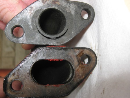 Collettore carburatore: sopra quello che ho preso da poco e che mi hanno spacciato per suo ma in realtà non credo che lo sia, sotto quello che ho trovato montato. (Perchè è fresato?) Immagine: