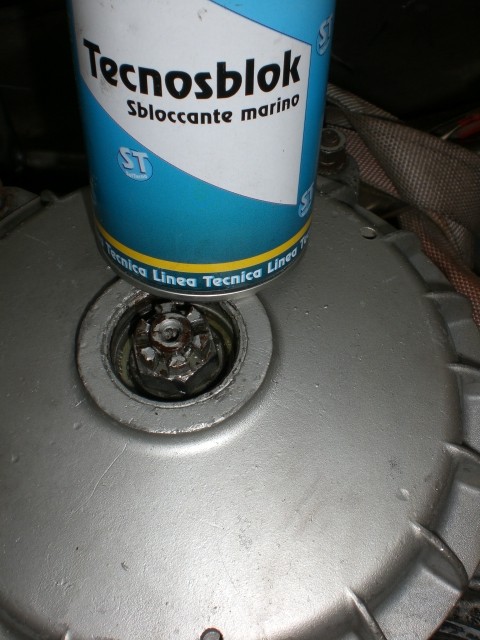 Durante l'operazione di smontaggio volano, è sorto il problema che il dado che fissa il volano non voleva saperne di allentarsi.. Ho provato a tenere con una mano il volano e con l'altra la chiave..