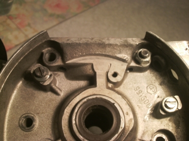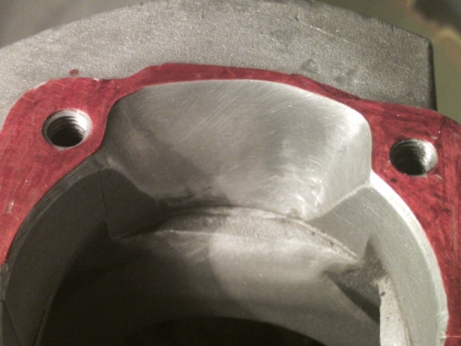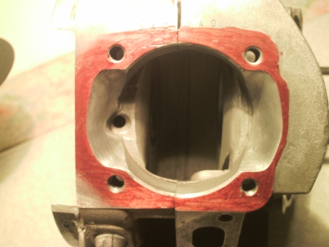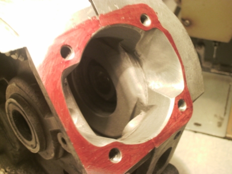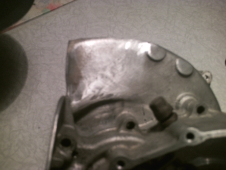 Putroppo le sue attrezzature non gli permisero di far un lavoro preciso, obbligandolo in qualche modo a "mangiare" in modo grossolano e irregolare il carter fino a creare un taglio sufficente per il passaggio del collettore dritto.