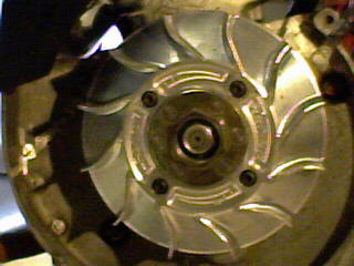 Nel frattempo ho fatto un paio di variazioni al blocco M1,sostituito il Koso32 con un vhst28 sperando di avere piu'agilitā in quarta e sostituito la ventolina del V.Tronic con analoga Parmakit per privilegiare il raffreddamento agli altissimi giri;sono perfettamente intercambiabili,bisogna solo prendere una lima tonda e correggere di mezzo millimetro circa i fori per le viti che nella V.Tronic sono leggermente piu'larghi