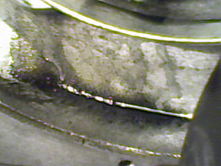 Ooooooops.....ho un problemino! Volevo iniziare a modificare l'anticipo,cosi'ho tolto il copriventola per poter smontare la ventolina,ma ho subito notato una chiazza in fondo alla chiocciola del carter...