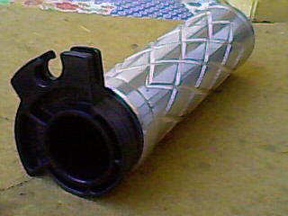 Ricostruire in metallo l'attacco per l'acceleratore con le giuste quote non era un lavoro alla nostra portata,cosi'abbiamo scelto una soluzione piu'semplice...spianato la battuta del vecchio attacco e tornito internamente la manopola per infilarci a pennello il rapido originale,massimo risultato col minimo sforzo