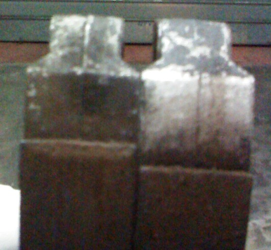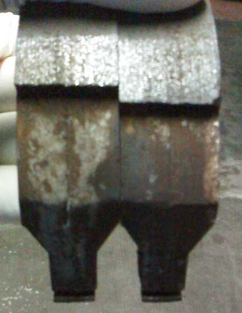 9- Ho rimesso il cuneo tra pedale e pedana: così facendo (con la camma girata) è facile togliere le ganasce tutte e due assieme e senza togliere la molla che e durissima e ci vuole una pinza apposita, infatti basta tirarle fuori un pò dal perno e un pò dalla camma, un pò dal perno e un pò dalla camma, e via così finchè non le togli tutte e due assieme,