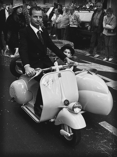 per il motore, preferivo mantenerlo originale, sto cercando i rapporti corti alla prima che la forniva insieme al sidecar marchiato , ma l'ultima volta che l'ho visto ad un mercatino chiedevano una cifra folle. il sidecar l'ho già usato nelle condizioni in cui si trova lo scorso anno per piccoli giri, si viaggia a 50-55km/h, di più è pericoloso, la a quella velocità lo tira bene, tieni presente che pesa circa 20kg meno del e del longhi. l'unica cosa che non va molto è la prima, credo che la frizione patisca non poco, la prima è troppo lunga, l'ingranaggio del cambio che forniva la non andrebbe male. superare i 55km/h è pericoloso, non so se avete già guidato una sidecar, ma i freni son già scarsi per la sola vespa, con il sidecar devantano quasi inesistenti... le manovre di emergenza sono poi quasi impossibili, quindi, meglio andare piano e usarla per quel che è... nell'eventualità di un incidente, il passeggero non ne esce bene