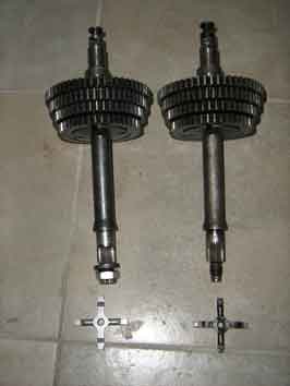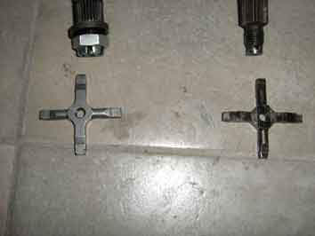 | la crocera di sinistra è come quella dei px pre arcobaleno, l altra è dei mezzi precedenti, quella di sinistra è di 5,5 mm mentre l altra di 5 mm, hanno l albero di comando diverso, in quella di sinistra la parte filettata che avvita nella crocera è ricavata direttamente dall albero di comando mentre in qualla di destra l albero ha un foro assiale dove passa un bullone che avvita sulla crocera, inoltre l albero ha la sede per creare un incastro con la crocera stessa |