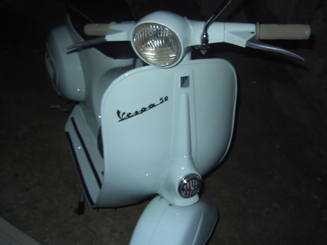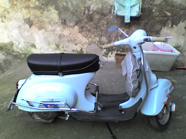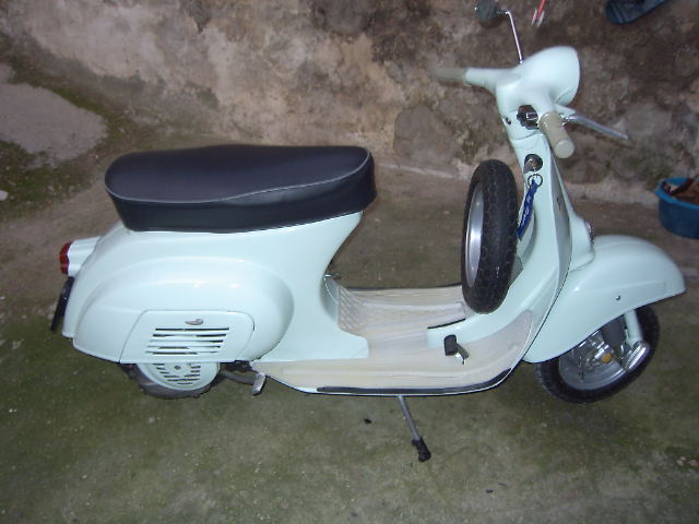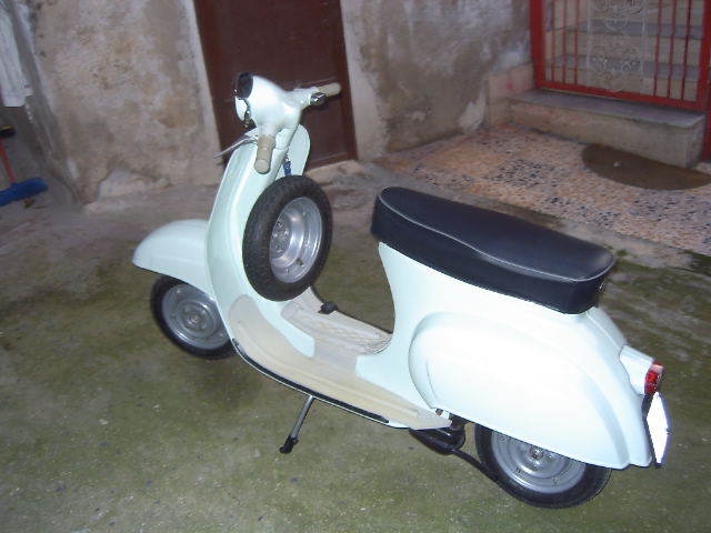 Ciao poeta! per i cerchi anche io ho optato per il colore in alluminio,ma il mozzo ,il copriventola e il tubo sterzo sono in tinta,lo stop (già c'era)come la 63'(ho dovuto mettere solo la plastica stop con il catadiottro incastonato bosatta),la sella lunga con bordo grigio e logo AQUILA CONTINENTALE considerando le vespe di quell'anno(vedi 90ss),la cuffia forse se la sono fregata in quanto quando la restaurai c'era (e purtroppo c'è) quella in plastica.Comunque penso che la piaggio all'epoca montava quello che aveva a disposizione,quindi non giudico nessuno(non sarei in grado! se si opta per soluzioni diverse, anzi per me vanno bene tutte,non fossilizziamoci!