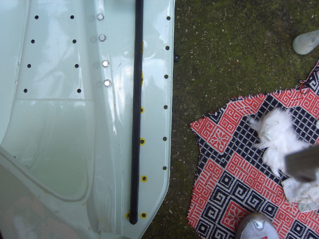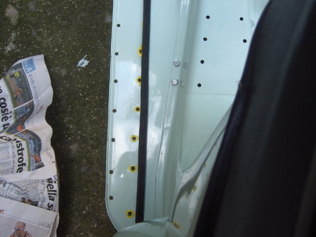 -LISTE PEDANA purtroppo quelli interni sono stati montati non bene,e siccome non me la sento di rimanerla cosi ho tolto i profili, ho fatto fare i buchi come dio comanda e adesso dopo aver fatto 200g di vernice(dopo diversi tentativi a campione sembra veramente uguale)faro' chiudere i buchi(il saldatore mi ha consigliato di far usare stucco a ferro) infine sopra faro' sfumare la pedana ,mentre sotto voglio andare di ritocchino[;)