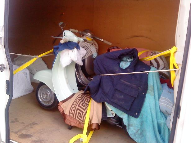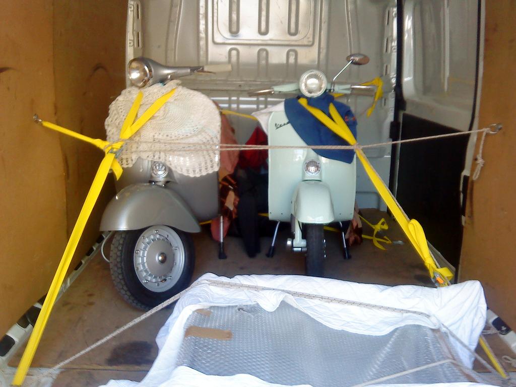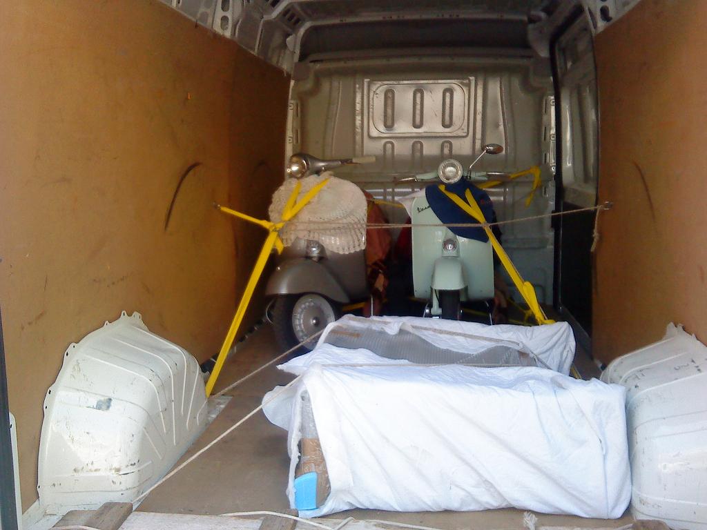 intanto il trasporto e' andato a buon fine,nonostante il percorso tortuoso le vespe ben legate non si sono spostate di un millimetro,quindi non ho fatto nessun danno