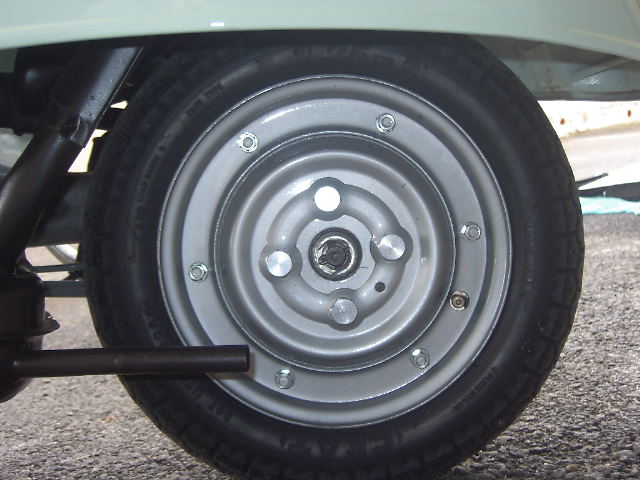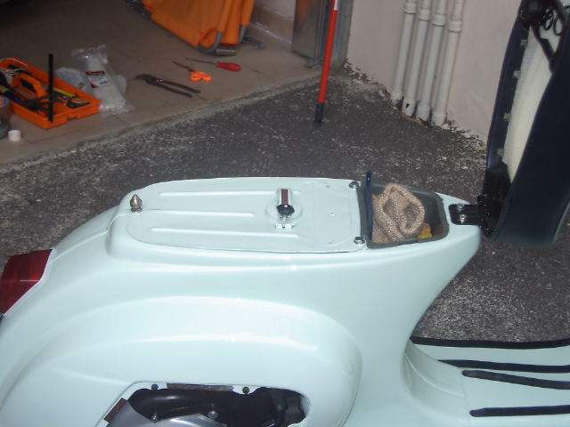 la vespa e' quasi totalmente montata mancano solo i cerchi che si trovano dal carrozzaio pronti ad essere verniciati.