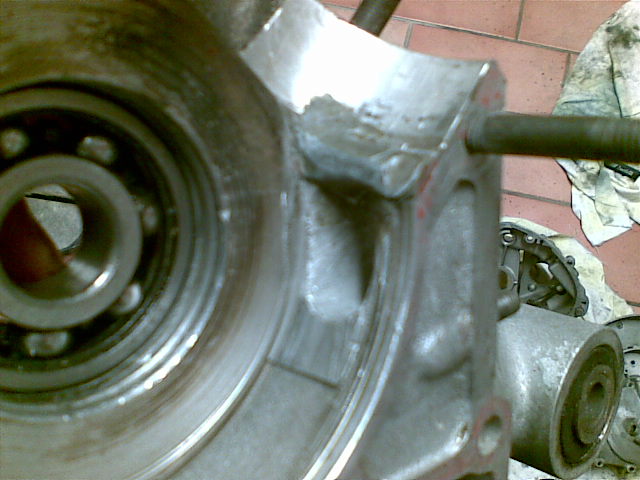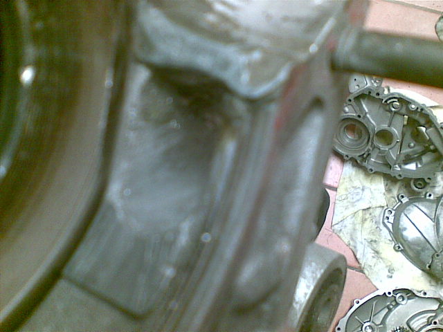 | l hanno allargata,ovvimente in una maniera che più barbara non si può,Sicuramente hanno asportato troppo materiale,e per riparare il danno hanno fatto un riporto di non so cosa(è tipo stucco color cemento)xò il risultato è quello che si vede in foto. |