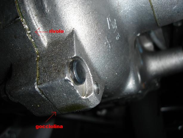 ecco una foto della perdita di olio ho controllato tutto..pulito bene ma niente credo proprio che provenga dall' unione dei carter.....