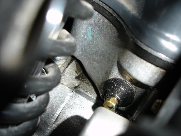 ecco la vite a cui mi riferisco, l'olio che si accumula nella scatola del carburo esce pian pianino tra la vite e la guarnizione in gomma che c'è attorno e poi cola lungo il carter.