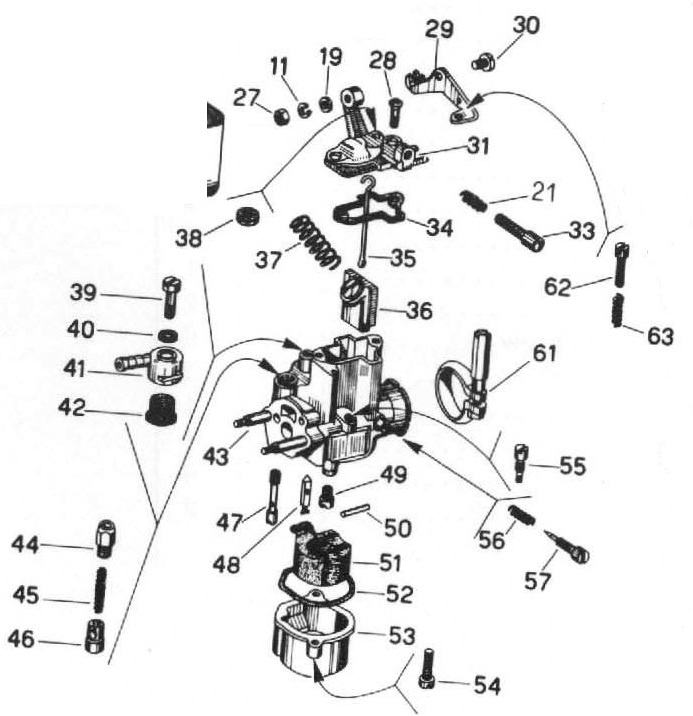 lo spillo è il pezzo 48 e viene azionato dal galleggiante 51, praticamente è il "rubinetto" che chiude la banzina quando la vaschetta 53 è piena |