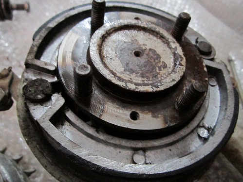 4) Che razza di bestia mi ha divorato il supporto alla base del perno in foto 4? è normale che sia così? Si è consumato per ossidazione.
