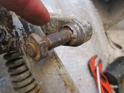 non riesco comunque a sfilare/svitare/rimuovere il perno filettato qui sotto. Tu mi hai detto di rimontare il dado per non rovinare la filettatura e di batterci sopra (ci ho provato ma non viene fuori nulla). Dove sbaglio? Non è che c'è qualcosa devo sbloccare prima di battere? Possibile che sia così resistente? Aiutatemi...