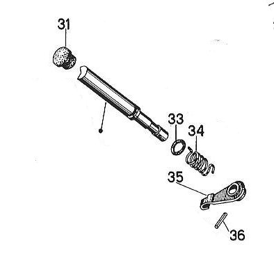 Posto le foto che mi chiedeva Steck: il motore è un po' zozzo, ma mi pare in ordine... Già che ci sono, vi chiedo un consiglio: come sapete la leva in questione è fissata sul perno con una spina. Se per caso avessi voglia di ricostruirmela io, con un pezzetto di tubo e una piattina opportunamente sagomati e saldati, potrei fissare il mio accrocchio con una copiglia così (tipo rubinetto benza) anziche usare la spina?