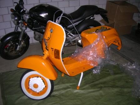 Ci sta bene davvero il parafango. Io però avrei messo piu particolari neri piuttosto che bianchi, sull'arancio sta meglio il nero |