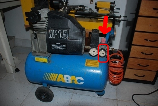 Dai sintomi sembra che manca di pressione... La pressione in uscita del compressore è regolata al max? (non quella interna) il manometro per la pressione in uscita è quello che ti ho segnato in foto.