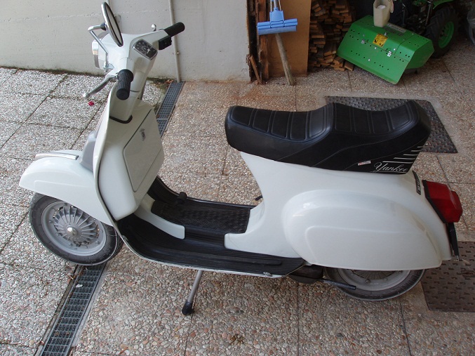 Originalmente erà verde militare, credo fosse un Verde Vallombrosa o Verde Militare. Poi è stata sabbiata e verniciata in Biancospino 715, credo che la vernice utilizzata sia un bicomponente Maxmeyer ma non so dirvi altro. Monta un motore 75cc Polini, purtroppo rettificato 2 volte a causa delle "persone" che l'hanno restaurata, però ora che mi sono "specializzato", ho rifatto il 3rd motore sostituendo tutto il rovinato e, fino ad ora, ci ho fatto ben 2500km senza avere mai problemi (tranne che con le candele ). Direi che come principiante me la sono cavato abbastanza bene, grazie anche a questo forum che seguivo costantemente per il rimontaggio, carburazione e problemi vari.