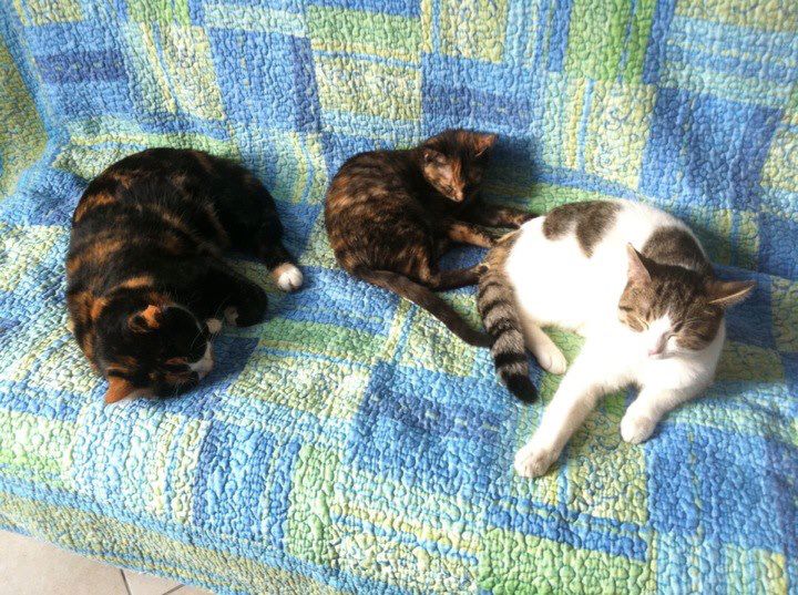 queste sono le mie, puccio (tricolore), cicciomicio (bianca/grigia) e margot (tortie). manca kiwi che è un gattaccio tutto nero!