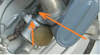 ti metto la foto del freno anteriore con le due frecce che indicano dove agire. quella corta è il dado di blocco, quella lunga è il nottolino.