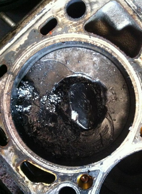 Nel tuo caso il pistone è stato bucato dalla valvola, probabilmente rimasta impuntata, o per rottura della catena o per altri fattori. (Ad esempio regolazione errata delle punterie) |
