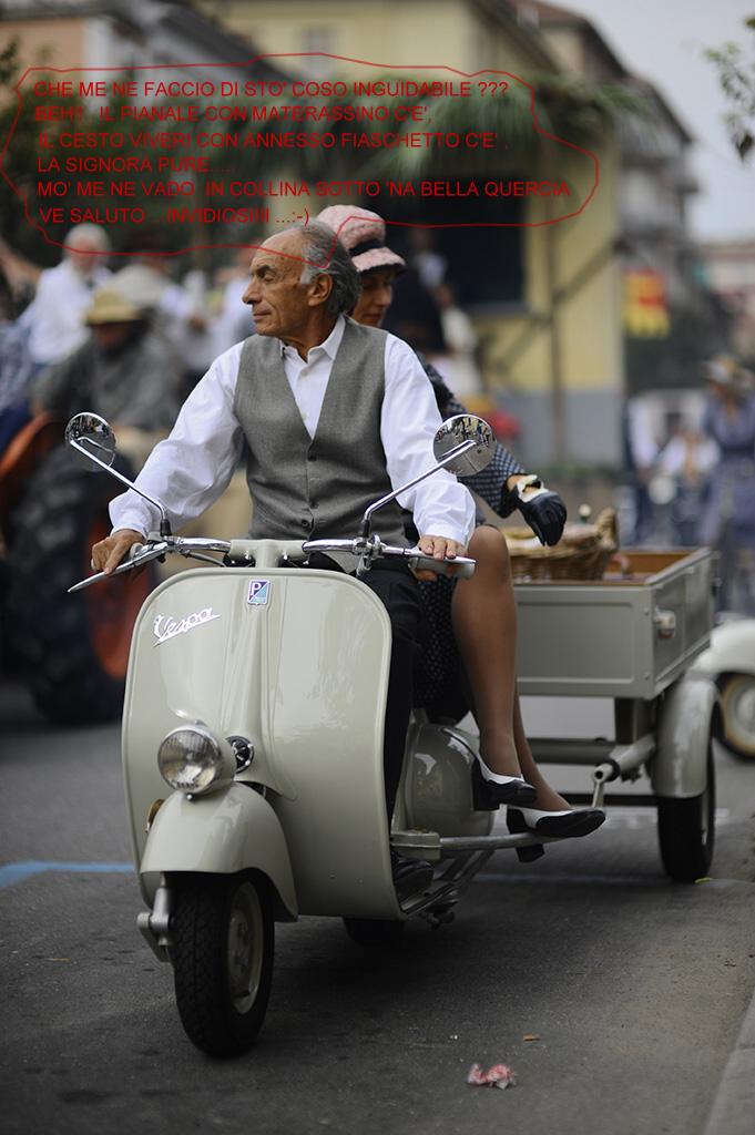 Beh certo che non è una vespa da lavoro. mi ha detto che ce ne sono diverse con il carretto ma in italia di tenute e restaurate così ce ne sono ben poche. la fiera è la Sagna delle Sagre ad asti ed è una manifestazione bellissima in cui ci sono più di 3000 figuranti in abiti d'epoca... veramente stupendo...