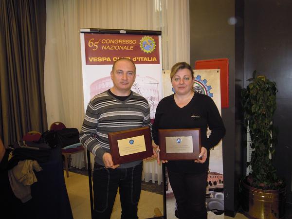 oggi ho partecipato al 65° congresso del vespa club italia fatto a roma,come sempre in compagnia della mia signora, e sono rimasto stupefatto in quanto non ci aspettavamo di arrivare 2 io e 3 qualificata mia moglie nella classifica individuale per club,almeno mi sono ho meglio dire ci siamo appagati del sacrificio fatto,evviva la vespa tra gioie e dolori,a stavolta ci siamo andati in macchina