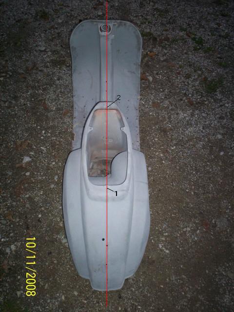 Devi misurare come ho fatto io con la foto. Guarda la vespa da dietro e vedi se è tutto perfettamente allineato oppure se il cannotto sporge a sinistra (come appare dalla foto). Aiutati con uno di quei metri avvolgibili in acciaio e lo fai passare per i punti 1 e 2 (guarda la foto). Immagine: