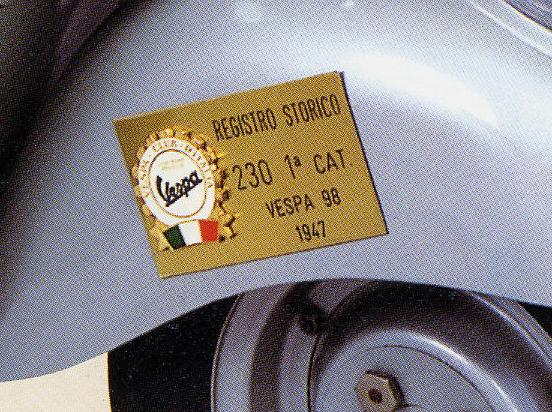Una ? la TARGA a cui bisogna ambire, c'? scritto sopra REGISTRO STORICO VESPA!