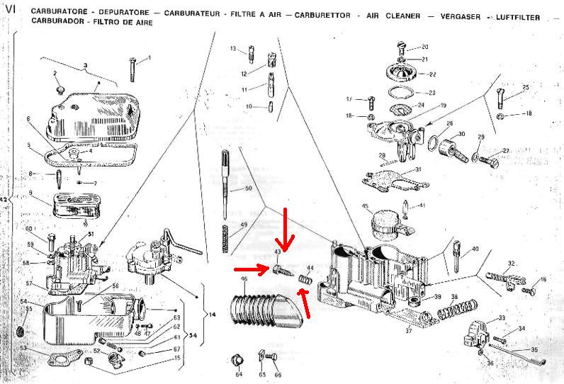 ma non porebbe essere che il galleggiante del carburatore sia danneggiato o BLOCCATO?...vi posto lo scoppiato per farvi capire bene quale vite ho svitato in maniera sproposiata;