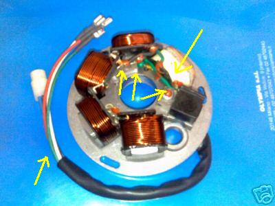 comincia a ricablare lo statore che avr? i fili marci, rimonta dopo il tutto e gira un po', al 90% sono quelli