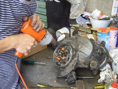 ecco mentre cerco di rimuovere le viti inchiodate dello statore con un sistema infallibile  ...