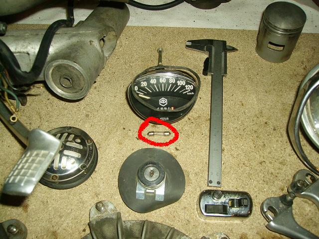 La lampadina la puoi trovare in un negozio di elettronica o da un elettrauto, ma anche in Piaggio. Il contachilometri scalato a 120Km/h con fondo nero è originale dell'epoca ? |