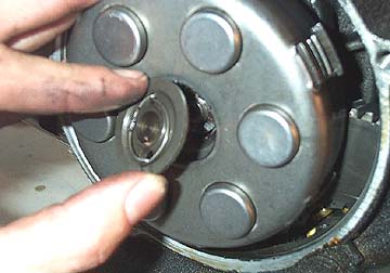 In questa ultima foto si vede il cuscinetto a rulli.provando a rimontare mi sa tanto che ne mancano due....è grave? La frizione come sta messa....bene? |