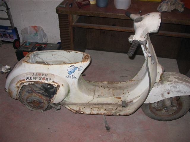 Ciao a tutti...di seguito riporto le foto del lavoro svolto fino ad ora. Per proseguire ho bisogno di alcuni consigli. Questa è la vespa che ho acquistato. Immagine: