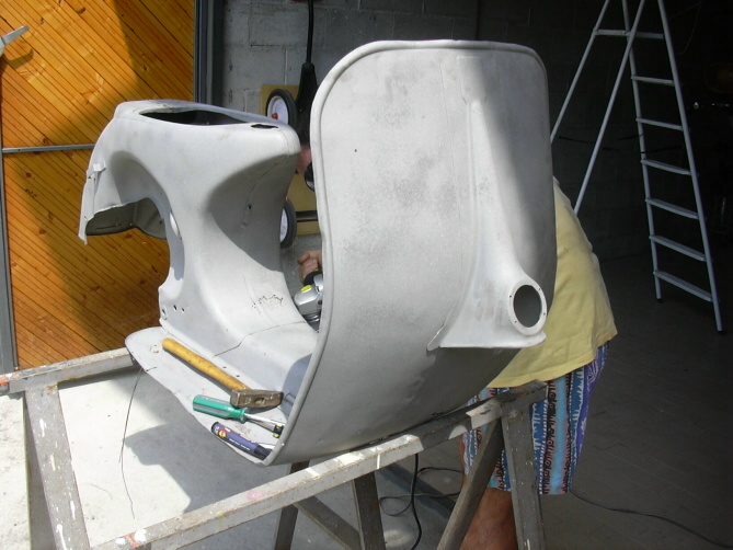 manca ancora del tempo a quando darai il fondo, ma voglio dirti subito che non devi dare un fondo qualsiasi e poi spruzzargli sopra la vernice del colore del fondo originale e successivamente il colore, devi cioè evitare di dare stucco a spruzzo di un colore diverso da quello originale, mi spiego meglio....