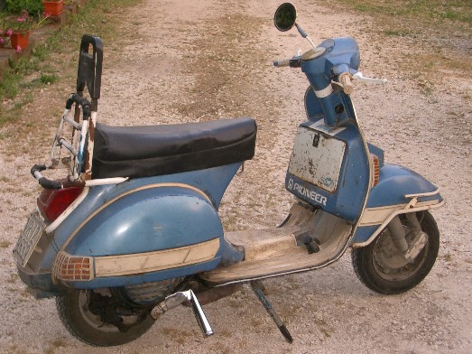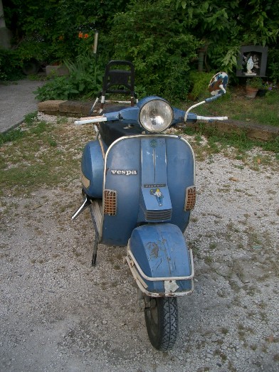 la vespa ha bisogno di un nuovo"vestito" ma quando sarà finita sera uno splendore...